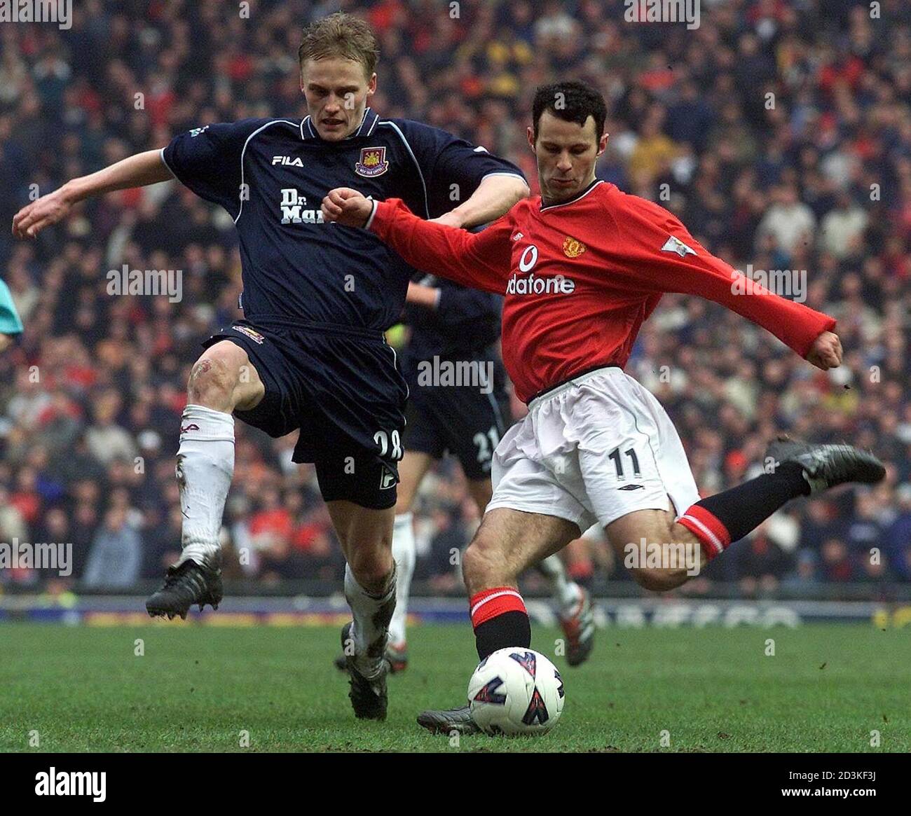Manchester United S Ryan Giggs R Is Tackled By West Ham United S Norweigan Defender Hannu Tihinen L In The Fa Cup Fourth Round At Old Trafford January 28 2001 West Ham United Beat