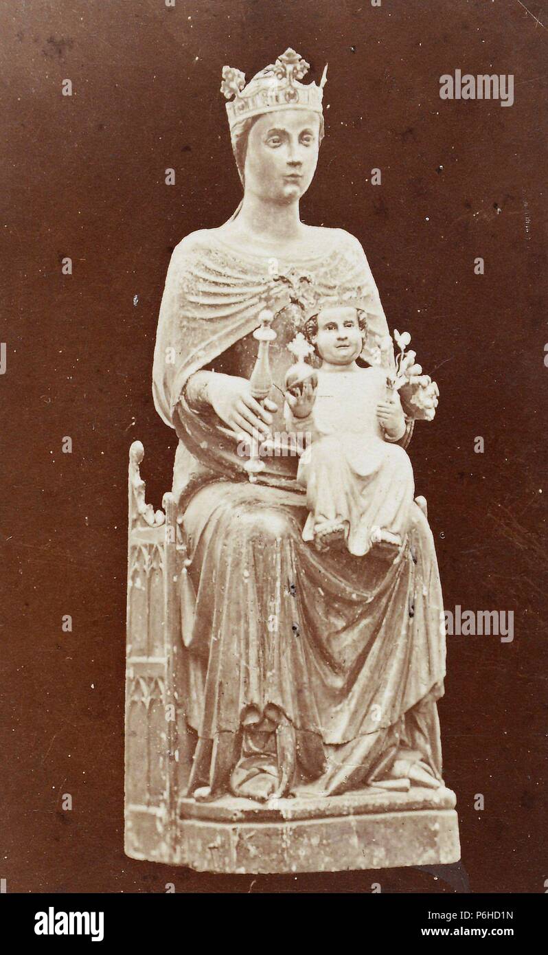 Se la llama también Generala de los Ejércitos Celestiales la Mujer Vestida de Sol y la Reina de la Paz. Ver otras imágenes de advocaciones catalanas. Virgen data del año 1631 en un testamento.